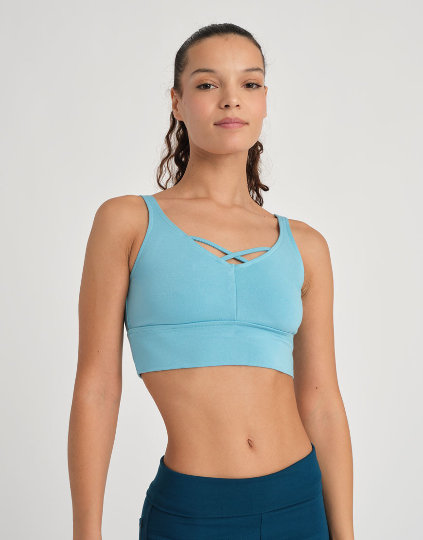 Designed for dance, yoga and fitness, the ALBIZIA sports bra offers comfortable medium support with a soft, breathable viscose-blend fabric. Its feminine V-neckline at the front and back, highlighted by thin crossed straps, gives an elegant look while remaining easy to wear every day.